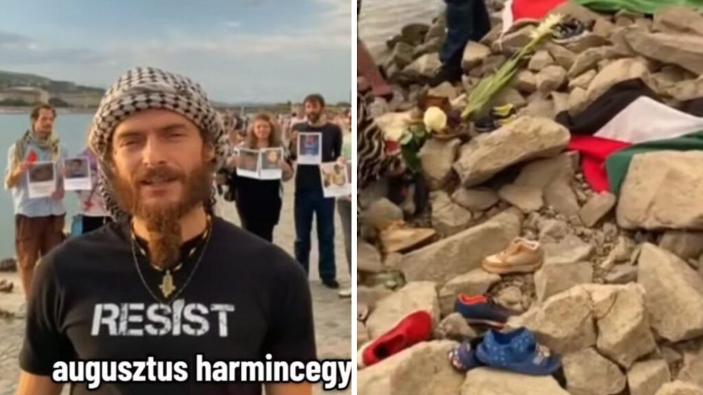 Palesztinbarát demonstráció volt a cipők emlékművénél a Duna parton